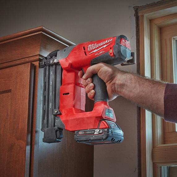 Акк. гвоздезабиватель Milwaukee M18 CN18GS-202X FUEL имеет высокую мощность, что позволяет забивать гвозди в твердую древесину. Режим одиночного выстрела и серии. Бесключевая настройка. Легкое обслуживание, работает без газовых баллонов. Быстрое извлечение застрявшего гвоздя.