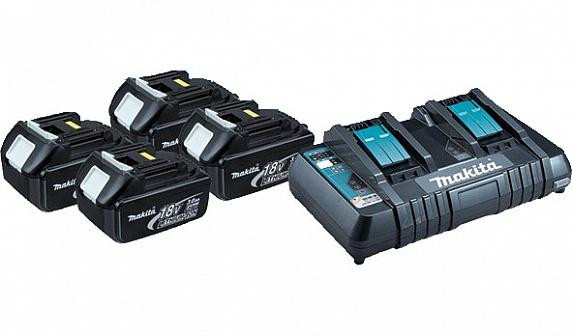 Комплект из 4 Li-Ion аккумуляторов Makita 18В, 5Ач и зарядного устройства на два аккумулятора.