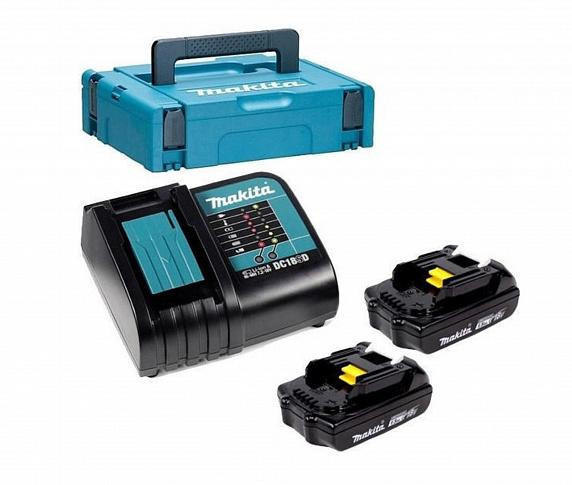 Аккумуляторный комплект МакРаск Makita. В комплекте 2 аккумулятора 18 В 1,5 Ач Li-on, а также зарядное устройство.