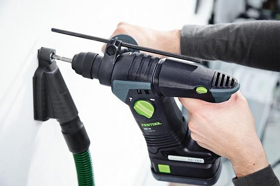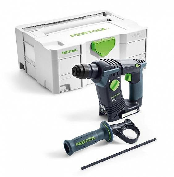 Аккумуляторный перфоратор BHC 18 Li-Basic Festool (1 шт) Дополнительная рукоятка (1шт) ограничитель глубины (1шт) Обрезиненные рамки для аккумуляторов (2 шт) Без аккумулятора