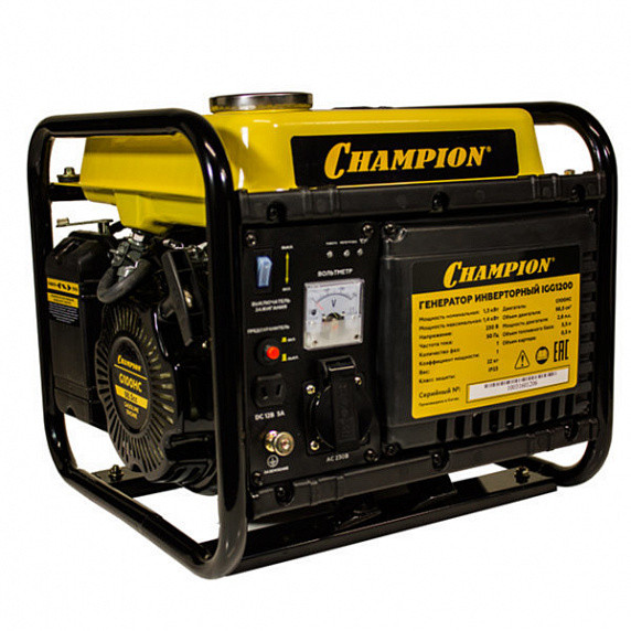 Бензиновый генератор "CHAMPION" IGG1200 - современный агрегат, который отличается высокими эксплуатационными свойствами. Такая модель рекомендована для подсоединения компьютера, бытовой техники, аудио- и видеоаппаратуры, котельного оснащения. В этой модели предусмотрен индикатор перегрузки. Он начинает светиться красным цветом и при перегрузке агрегата, и в случае короткого замыкания.