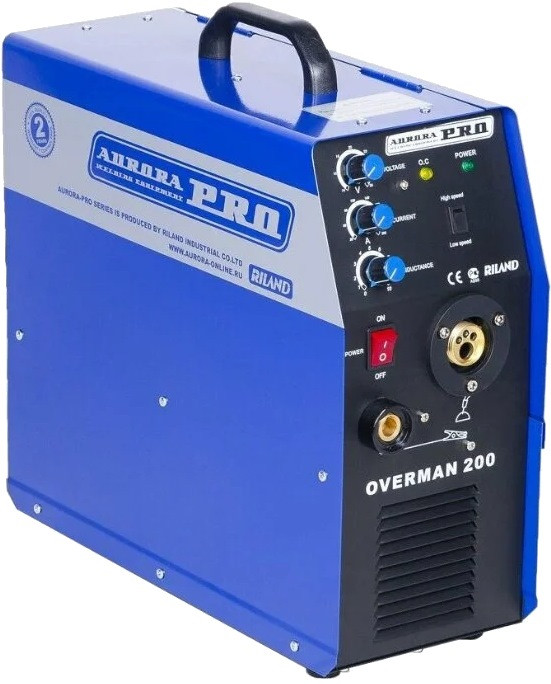 Сварочный инвертор AuroraPRO OVERMAN 200 предназначен для полуавтоматической сварки в среде защитного газа MIG-MAG, а так же для работы с порошковой самозащитной проволокой в режиме NO GAS. . Благодаря продолжительному режиму работы на максимальных токах аппарат прекрасно подходит для работы как на бытовом так и на профессиональном уровне. В гараже, в автосервисе, на производстве - везде ОВЕРМАН 200, будет проявлять себя прекрасным и надежным помощником в деле. Overman 200 показал неплохие результаты при работе с алюминием. Мы рекомендуем этот аппарат для бытовой и полупрофессиональной сварки данного металла. Нагляное управление всеми важными параметрами сварки на лицевой панели позволит настроить полуавтомат для выполнения широкого спектра сварочных работ. Отдельным плюсом аппарата является возможность сварки в сетях с большими просадками питающего напряжения - OVERMAN 200 способен работать при падении напряжения до 140 вольт.