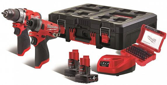 Набор Milwaukee M12 FPP2A-402. Дрель оснащена бесщеточным двигателем Powerstate™. Защита от перегрузок и перезаряда Redlink Plus™. ¼” Hex патрон для быстрой и легкой смены бит. Уровень заряда батареи. Светодиодная подсветка.