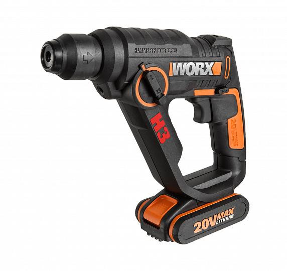 Перфоратор аккумуляторный WORX WX390.1, 20В для сверления отверстий в металле, пластике, дереве, кирпиче и других строительных материалах. 3 в 1: перфоратор, дрель и гайковерт. Светодиодная подсветка. Высокая компактность. Совместимость с всеми стандартными дрелями SDS Plus, шестигранными битами и обычными дрелями.