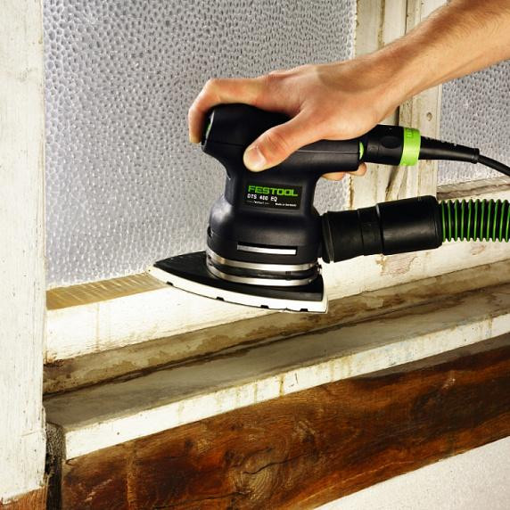 Шлифмашина дельтавидная "FESTOOL" DTS 400 EQ-Plus подходит для работы в вертикальной плоскости или над головой, шлифованием одной рукой. Предназначена для шлифовки краски и лака с оконных рам, массива и шпона перед нанесением лака. Регулируемая частота вращения для работы.