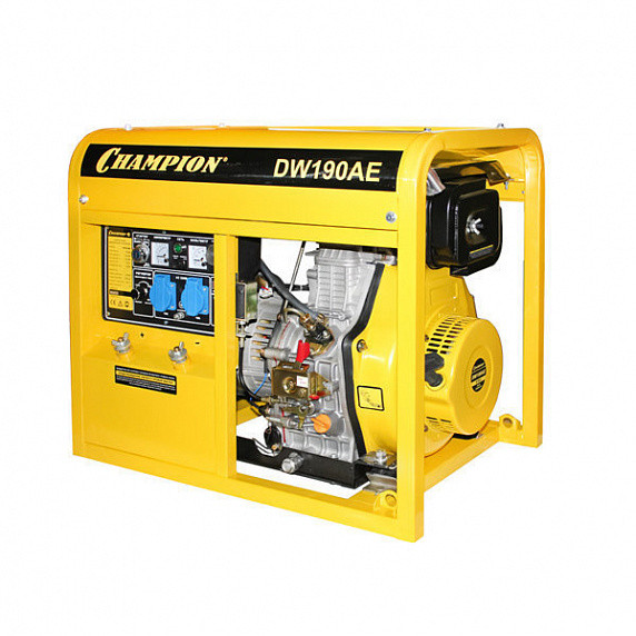 Сварочный генератор "CHAMPION" DW190AE предназначен для интенсивного промышленного использования в качестве источника электричества там, где отсутствует доступ к электросети. Также его можно применять в быту при необходимости обеспечить питанием большое количество приборов. Генератор дизельный Champion DW190AE New оборудован высоконадежным и долговечным четырехтактным двигателем мощностью 10 лошадиных сил. Это тяжелый и прочный силовой агрегат, который характеризуется умеренным потреблением топлива.