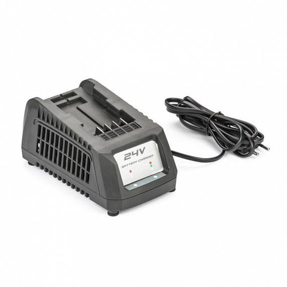 Зарядное устройство (стандартное) для зарядки аккумуляторов напряжением 24 В. Выходной ток 1,5 А обеспечивает быструю зарядку. Светодиодные индикаторы показывают, заряжается аккумулятор или он уже полностью заряжен. Габаритные размеры устройства: 17,5 х 10 см. В комплект входят вилки европейского и британского стандартов.